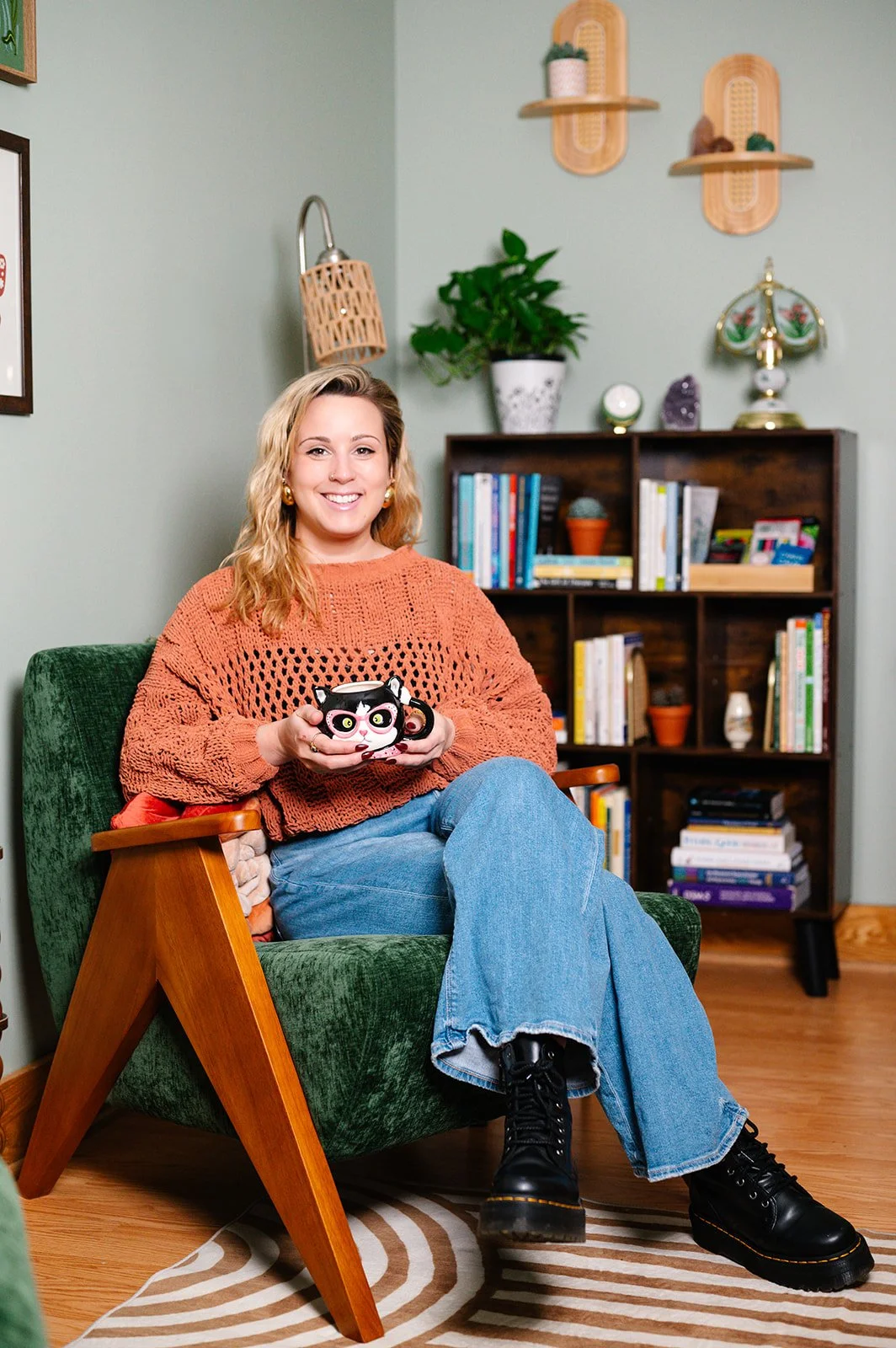 As a human, I care for myself through slow mornings in coffee shops, good books, live music shows, movement (whether it's dance, strength training, or a walk in the woods), and meaningful connections with family, friends and the people I love. I often see clients virtually from my home office, and my cat Mac may make a surprise appearance from time to time. I believe virtual therapy is a powerful tool for accessibility, whether you're managing a full schedule, living in a rural area, or simply feel more at ease in the comfort of your own space. I will begin to offer in-person therapy sessions in downtown Bloomington 2 days/week around March 2026.